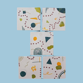 (In order of appearance: Chunky Knit Blanket, Love Wins Candle, Abstract Coaster Set, Skater Dog Bandana, Holiday Gift Set, Radiant Art Piece, Vibrant Candle Collection, Funky Coral Vase, In Bloom Art Piece, "Groovy Baby" Tote Bag, Plant Propagators, "Support Local Artists" Tote Bag)